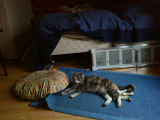 Poor Fajsty. The cat has now taken over the whole place except the bed.