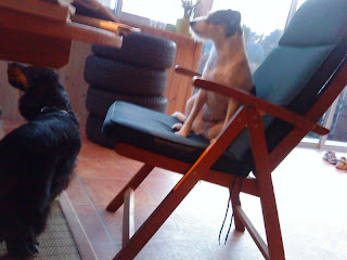 Muffin overlooks the meal and Fajsty hopes for crumbs. . .
